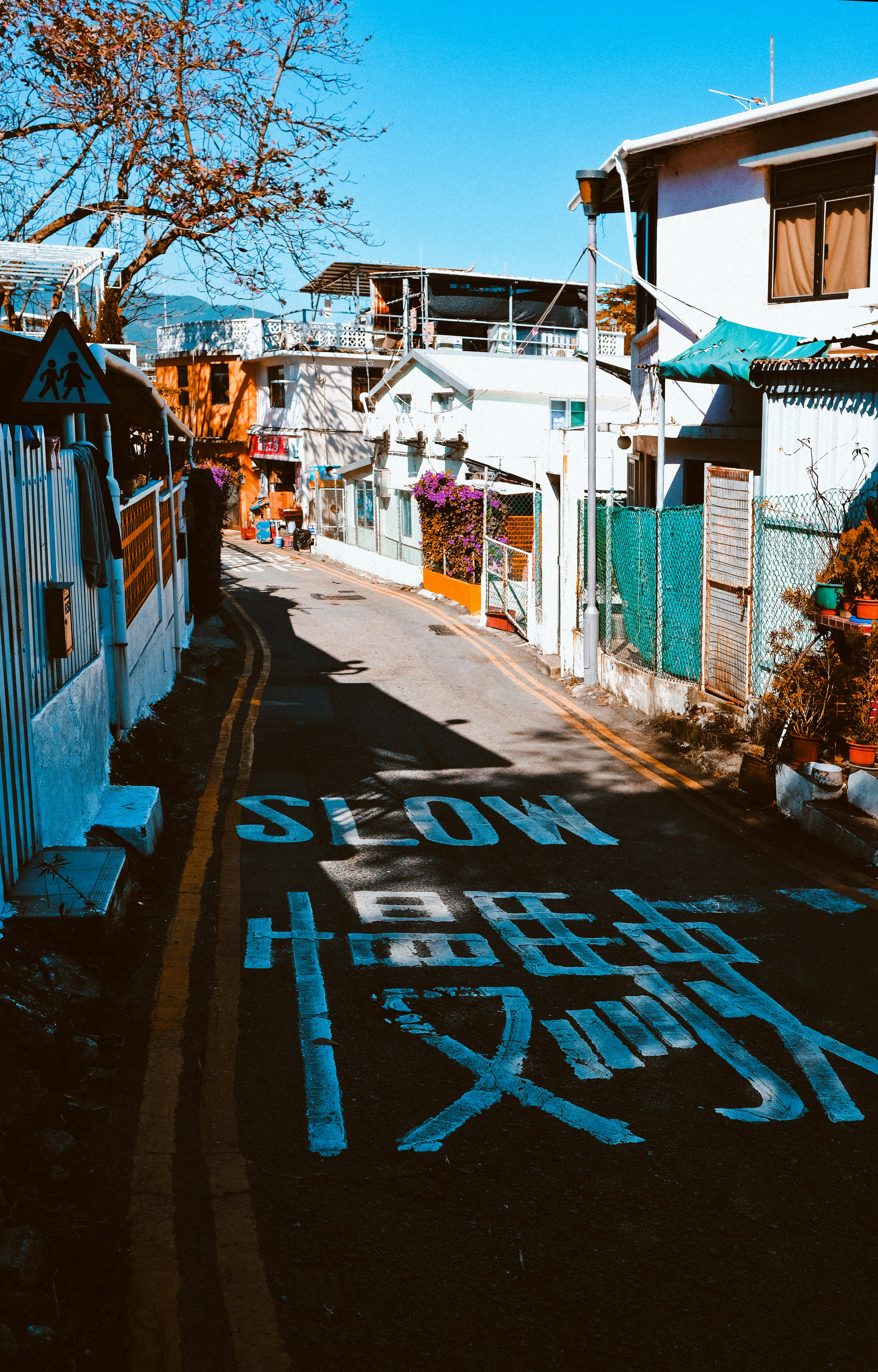 blue and white painted houses